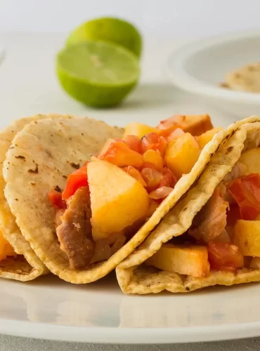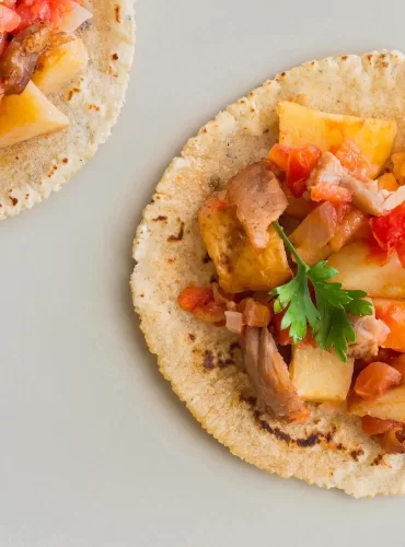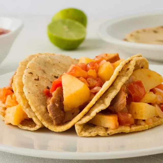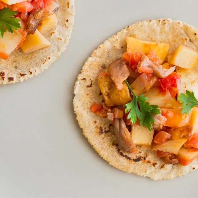 El clásico chilango: pastor jugoso, piña, cilantro y doble tortilla.