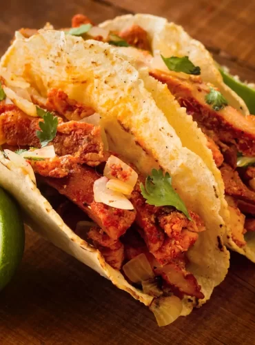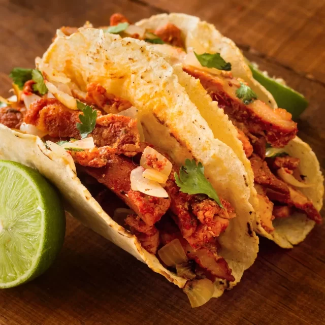Carne de cerdo cocinada lentamente en el trompo con adobo tradicional.