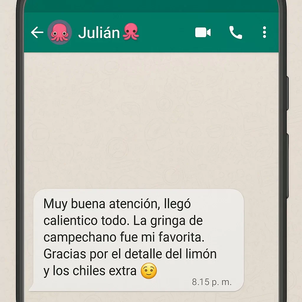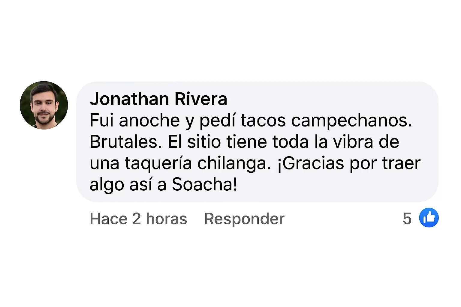 “Pedí unos tacos campechanos y fue como estar en CDMX. Todo fresco, sin pretensiones, pero con un sabor brutal. El ají, además, es un vicio. Ya los recomendé a mis amigos.”