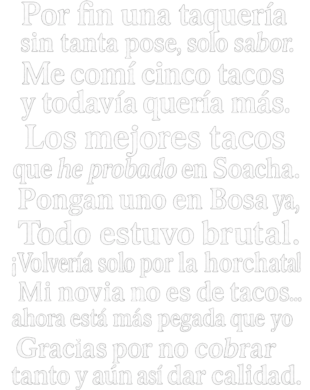 “Sin duda la mejor taquería de Soacha. En Ciudad Verde no hay nada que se le acerque: el pastor, las salsas y el ambiente son brutales.”